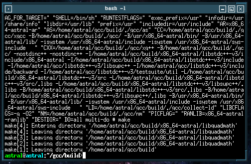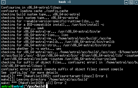 make install relating to docs. I slowly worked on it over a few months and now I will be talking about them in the order which they happened during the build process, as well as talk about what is next for full self-hosting in Astral.Libgcc failing to configure